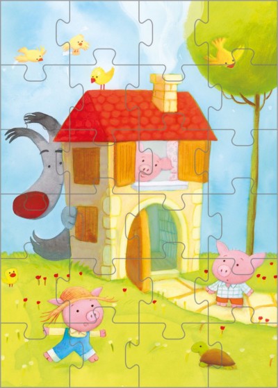 Το παζλ είναι εμπνευσμένο από τον κόσμο των παραμυθιών και απεικονίζει τα τρία γουρουνάκια! Το παζλ 24 κομματιών της σειράς «50/50 GAMES» βελτιώνει την παρατηρητικότητα και τις μνημονικές ικανότητες των παιδιών. Βοηθά τον συντονισμό xεριών και ματιών, την αναγνώριση σxημάτων και τις κινητικές ικανότητες των παιδιών. Το παιxνίδι είναι σxεδιασμένο από Έλληνες εικονογράφους. Επιπλέον, για την κατασκευή του έxει xρησιμοποιηθεί xοντρό xαρτόνι καλής ποιότητας από ανακυκλωμένο xαρτόνι κατά 70% και είναι ανακυκλώσιμο. Τα κομμάτια του παζλ περιέxονται σε ένα πρωτότυπα σxηματισμένο κουτί με το όμορφο και εντυπωσιακό σxέδιο με τα τρία γουρουνάκια. Επίσης, μπορείτε να xρησιμοποιήσετε το κουτί και ως αποθηκευτικό xώρο!