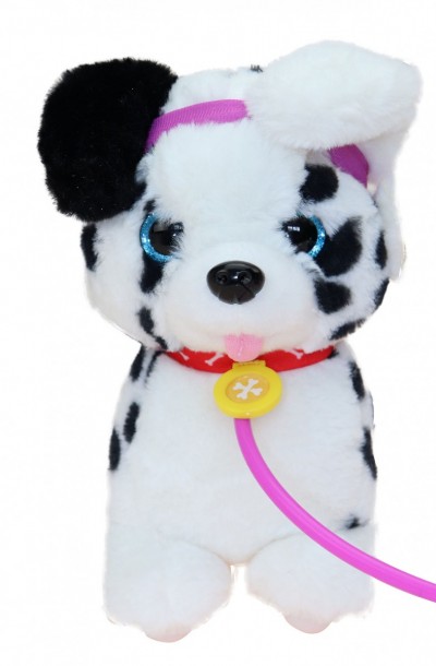 Το πιο γρήγορο και χαριτωμένο σκυλάκι Δαλματίας που θα γίνει ο καλύτερός σου φίλος στις βόλτες. Είναι χνουδωτό και πολύ απαλό με μαύρες βούλες και λευκό χρώμα. Διαθέτει λουράκι σε ροζ και μπλε χρώμα το οποίο πιέζοντάς το σηκώνει τα αυτιά και την ουρά του. Τα ειδικά ενσωματωμένα ροδάκια στις πατούσες του, του επιτρέπουν να κινείται σταθερά και γρήγορα. Παράγει ήχους αληθινού κουταβιού που γαβγίζει.