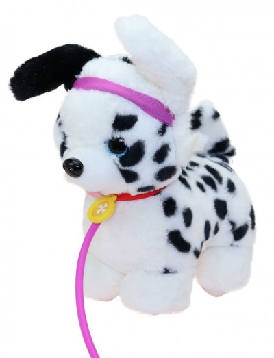 Το πιο γρήγορο και χαριτωμένο σκυλάκι Δαλματίας που θα γίνει ο καλύτερός σου φίλος στις βόλτες. Είναι χνουδωτό και πολύ απαλό με μαύρες βούλες και λευκό χρώμα. Διαθέτει λουράκι σε ροζ και μπλε χρώμα το οποίο πιέζοντάς το σηκώνει τα αυτιά και την ουρά του. Τα ειδικά ενσωματωμένα ροδάκια στις πατούσες του, του επιτρέπουν να κινείται σταθερά και γρήγορα. Παράγει ήχους αληθινού κουταβιού που γαβγίζει.